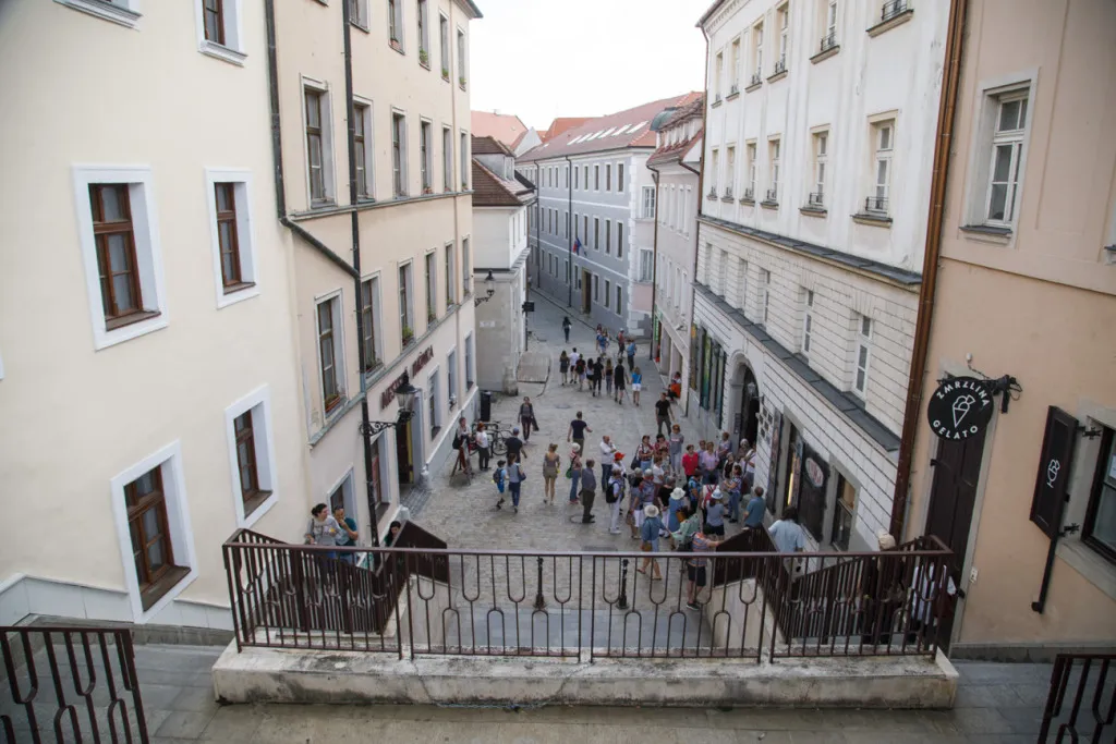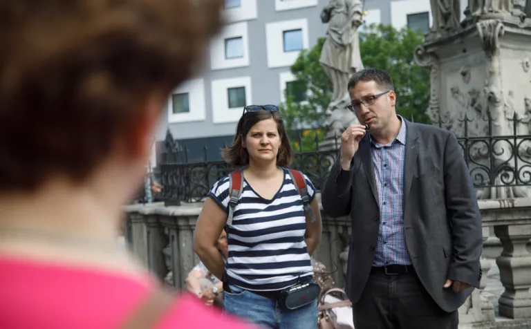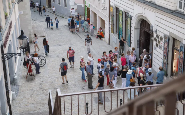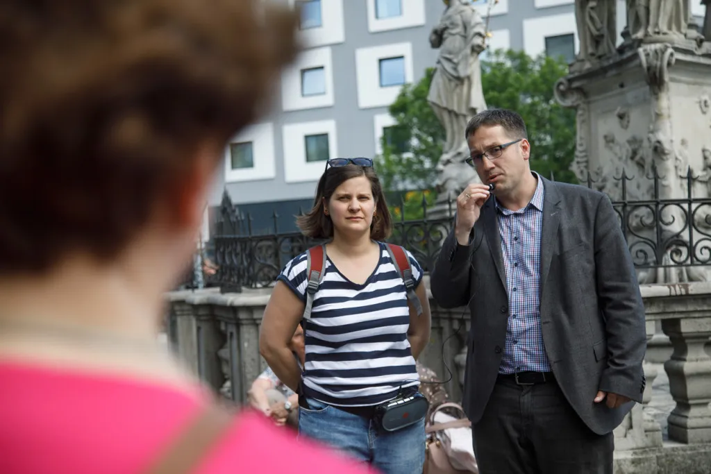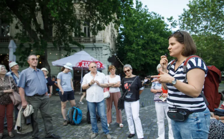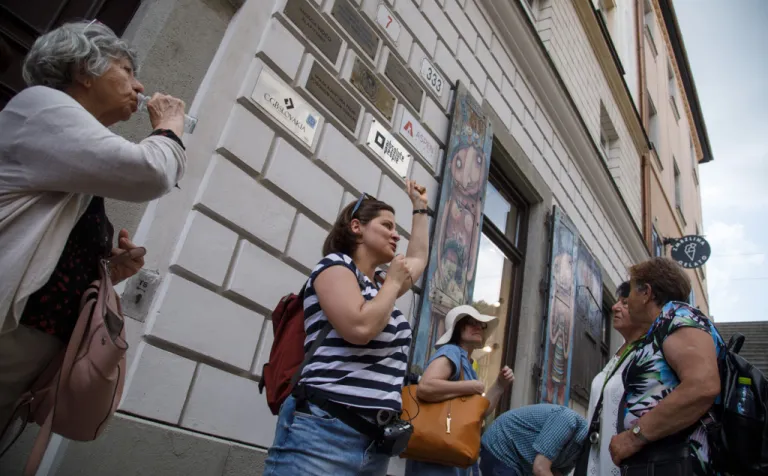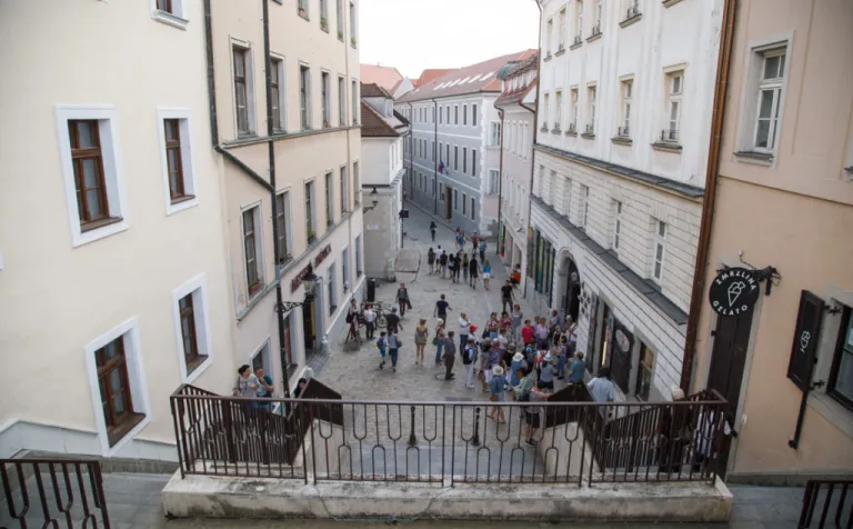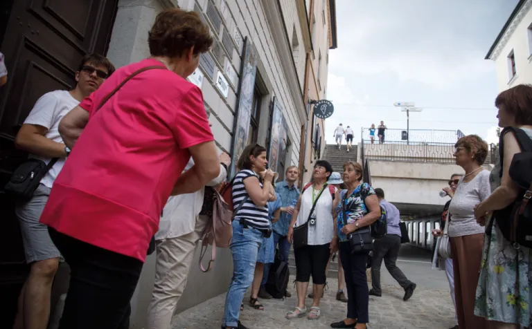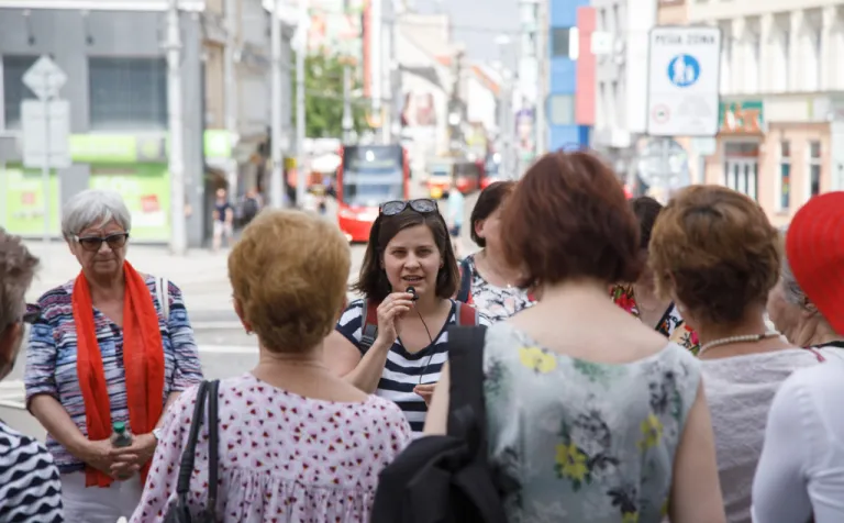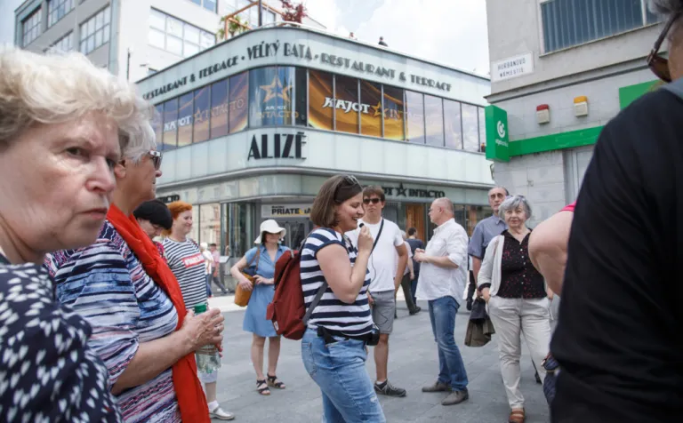 A több tucat érdeklődő a Grassalkovich-palota előtti Hodža térről indult, ahol a többi közt Croy-Dülmen Izabella belga hercegnőről, az 1889-ben az V. hadtest parancsnokaként Pozsonyba vezényelt Habsburg Frigyes főherceg feleségéről, valamint Chotek Zsófia grófnő és Habsburg–Lotaringiai Ferenc Ferdinánd főherceg szerelmének pozsonyi kibontakozásáról hallhattunk. A Mihály-kapu közelében szó esett a pozsonyi boszorkányokról, több helyszínen az 1741-ben Pozsonyban magyar uralkodóvá koronázott Mária Teréziáról, valamint például az 1775-ben a városban született Brunszvik Terézről, a magyarországi kisdedóvók (óvodák) első szorgalmazójáról.