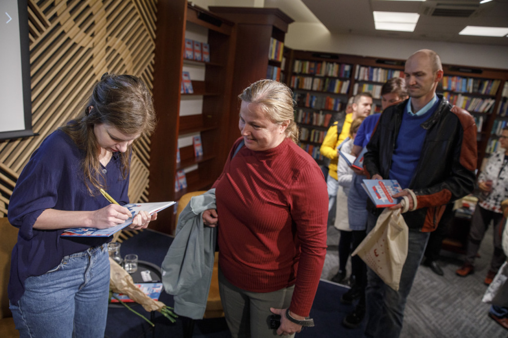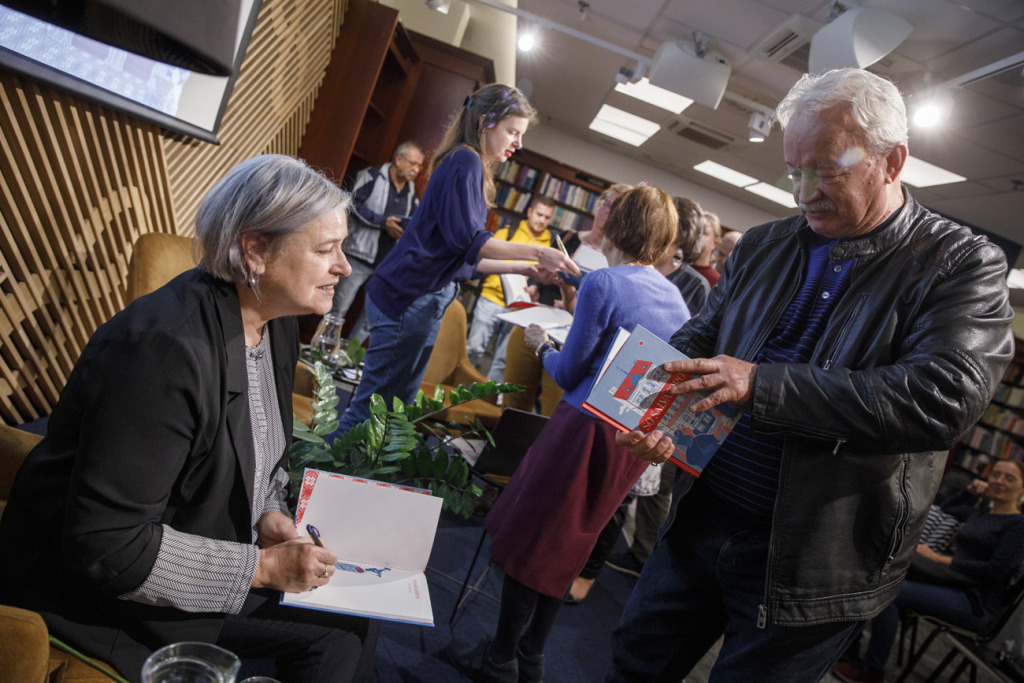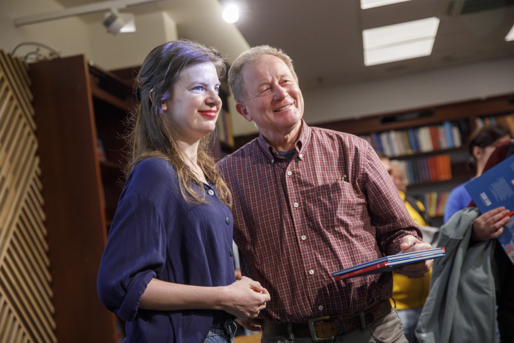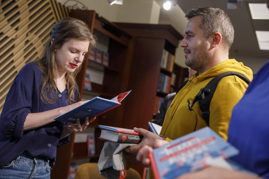 Végül a két szerző és a beszélgetés vezetője szimbolikusan életre keltette a könyvet – hogyan is másként, mint gyógyszerrel: széttörtek a kötet felett egy Acylpyrin-tablettát. Az est hivatalos része után természetesen a dedikálás sem maradhatott el.
