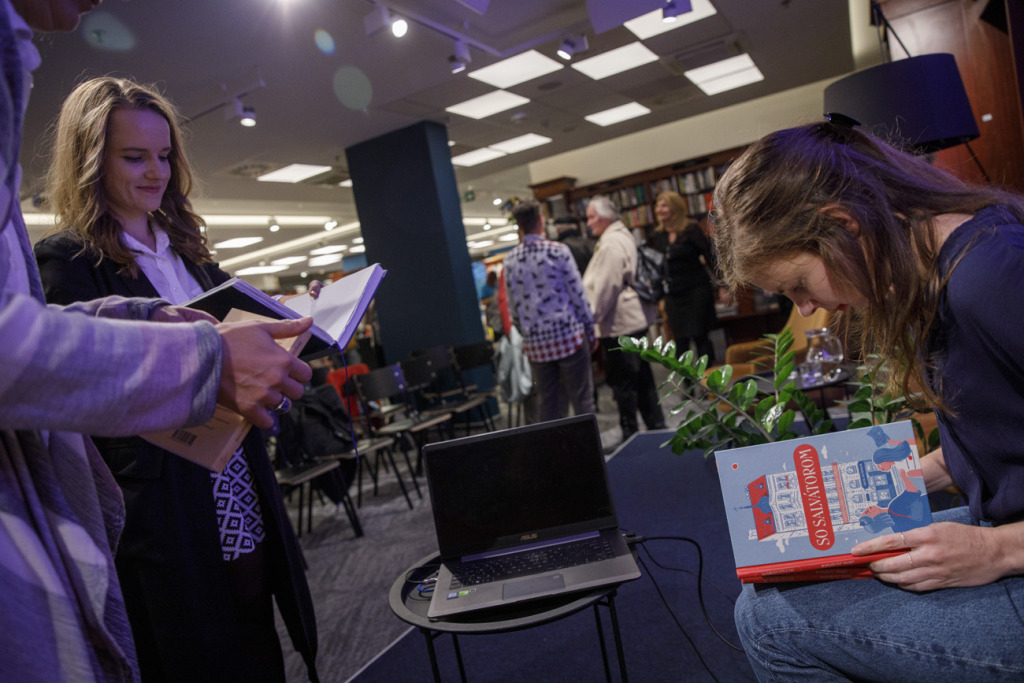 Jana Juráňová érdekességeket osztott meg a közönséggel a kötet létrejöttének kulisszatitkaiból, amit az is nehezített, hogy a szöveg éppen a világjárvány legádázabb tombolása idején született. A Salvator gyógyszertárhoz fűződő személyes kapcsolatáról és az ikonikus épület Pozsony történetében játszott szerepéről is szólt, rámutatva, hogy a híres gyógyszertár története mintegy leképezi a városét.