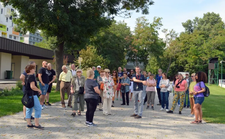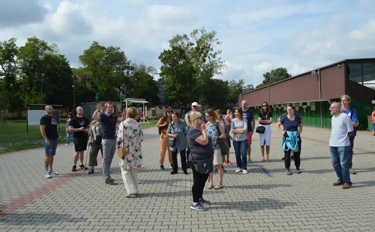 Hároméves elmaradást pótolt idei első tematikus sétájával a Pozsonyi Kifli Polgári Társulás. A ligetfalui lakótelep egyik ikonikus sportlétesítményét látogattuk meg.