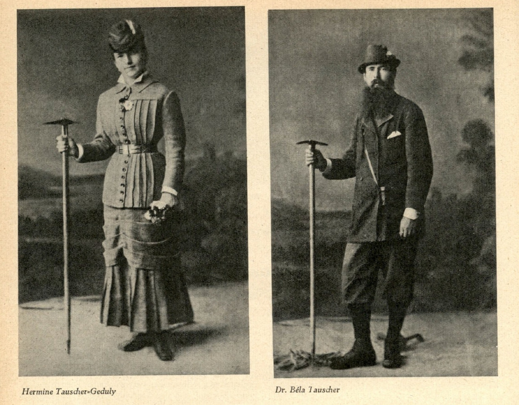 A Tauscher házaspár portréja korabeli hegymászóruhában (forrás: Mitteilungen des Deutschen Alpen Vereins)