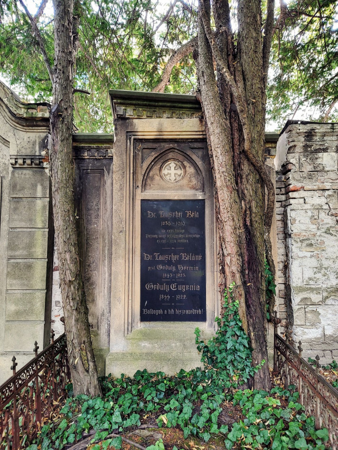 A Tauscher házaspár sírja a Kecske-kapui evangélikus temetőben. Hermina húga, Eugénia is mellettük nyugszik (fotó: a szerző)