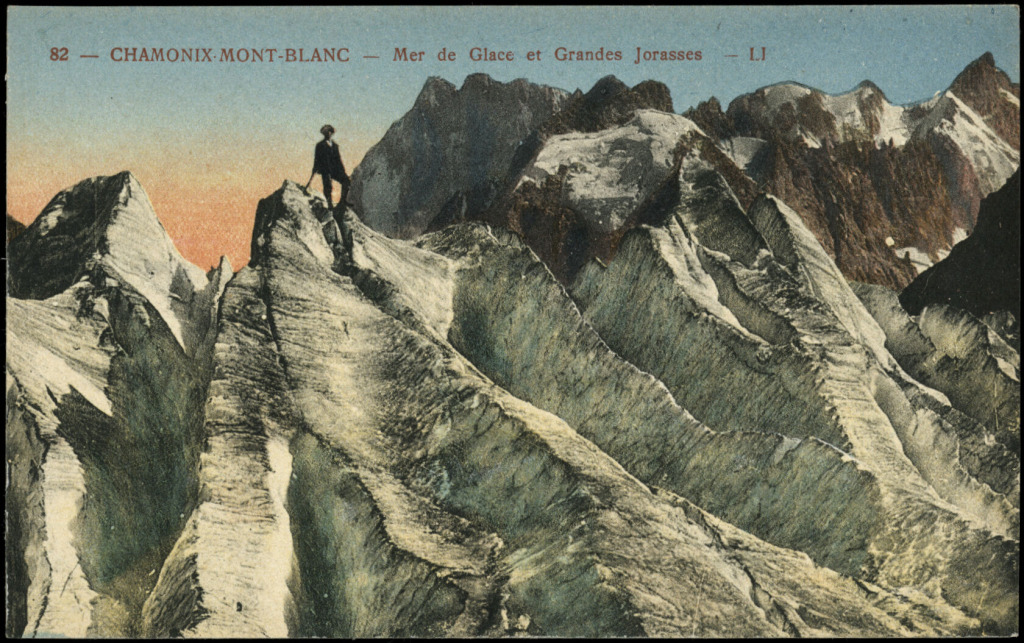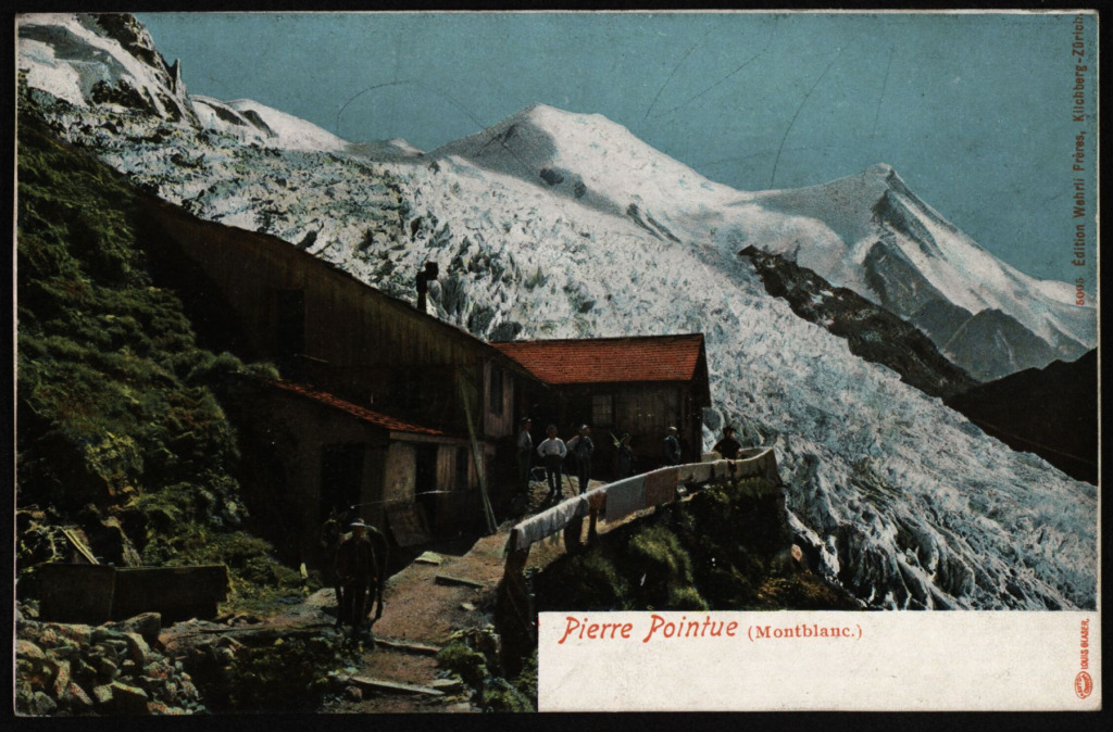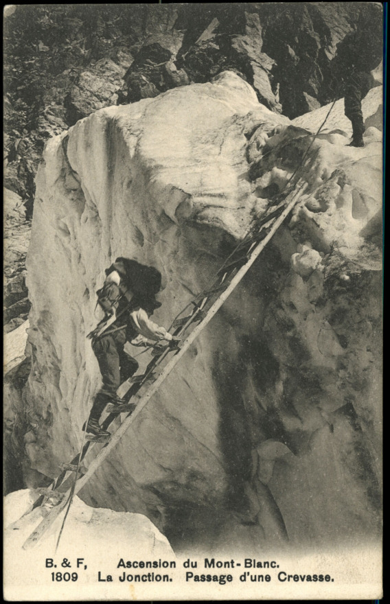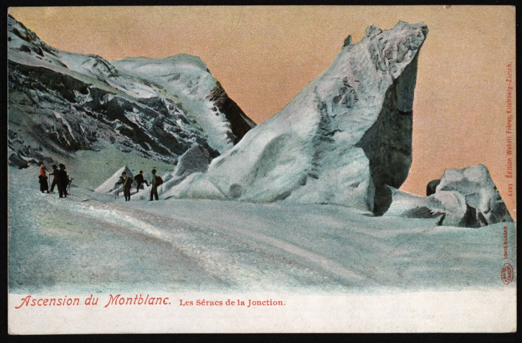 A Mont Blanc-ra tartó hegymászók egy régi képeslapon (forrás: www. akon.onb.ac.at)