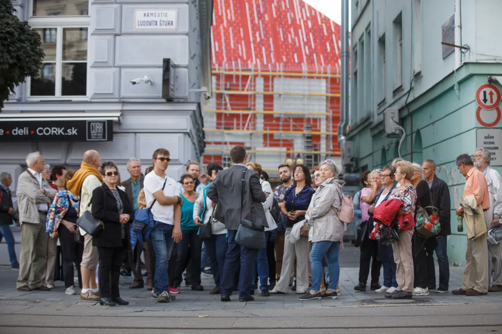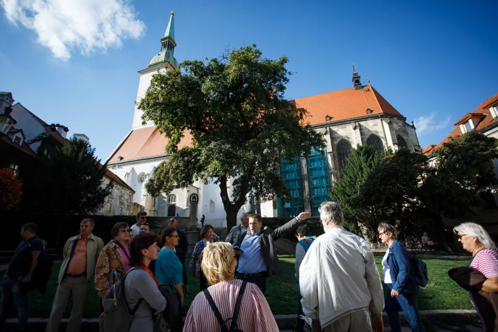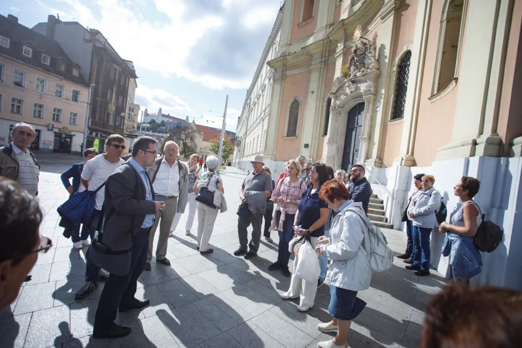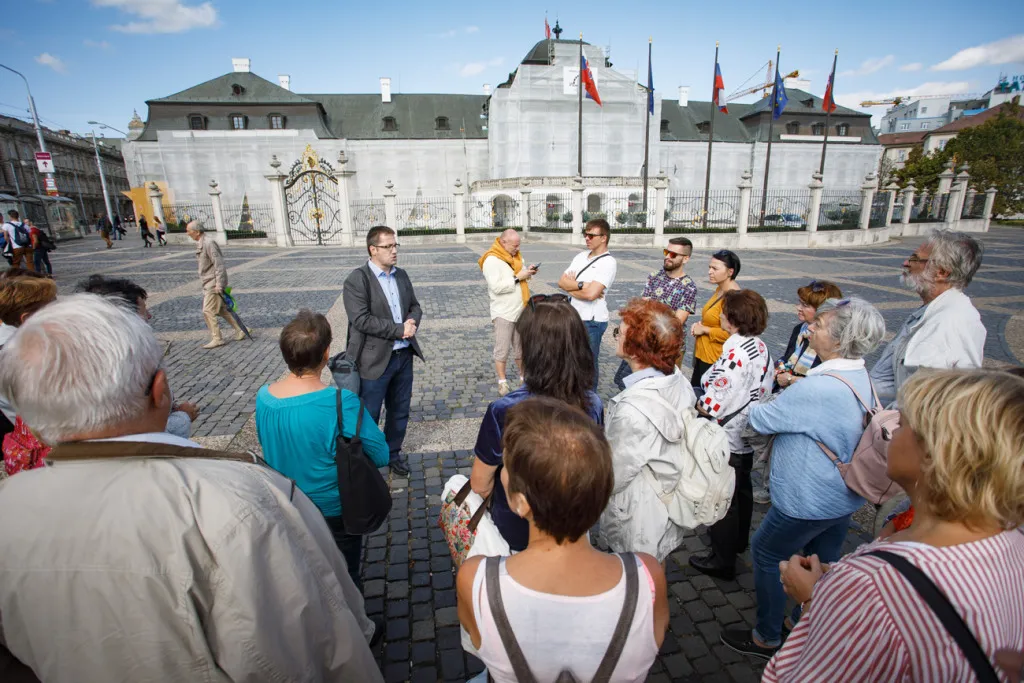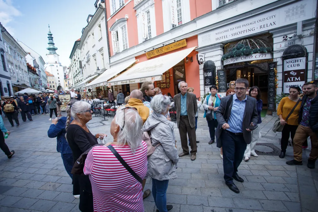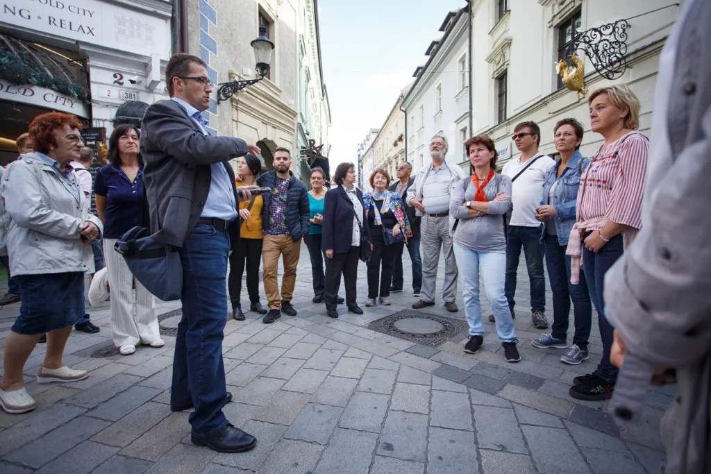 A Pozsonyi Kifli alelnöke, Korpás Árpád idegenvezető 2019. szeptember 27-én tartott városnézésén 32-en vettek részt. Sétánk a XXXIII. Pozsonyi Városi Kulturális Napok nyitórendezvénye volt.