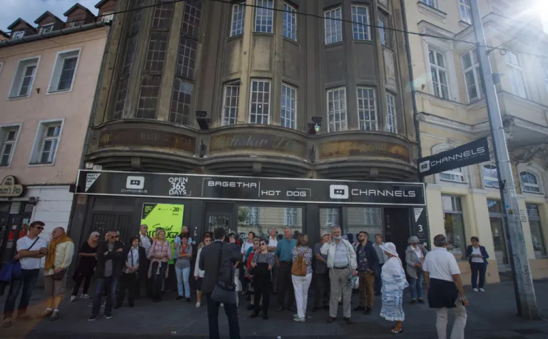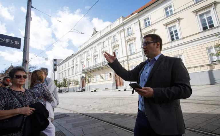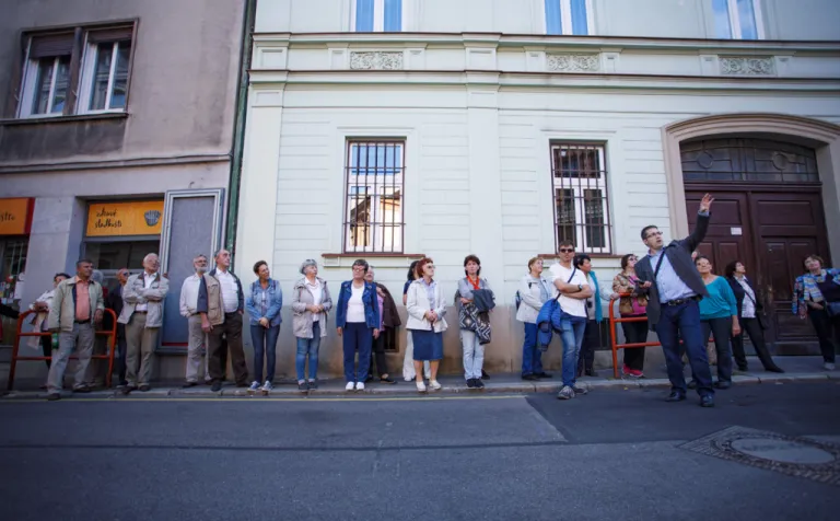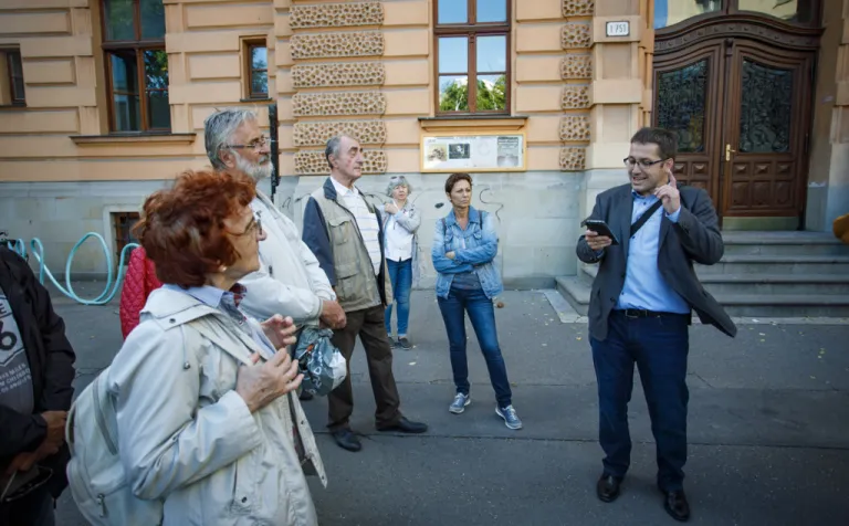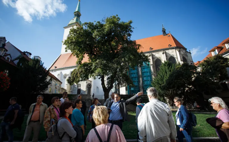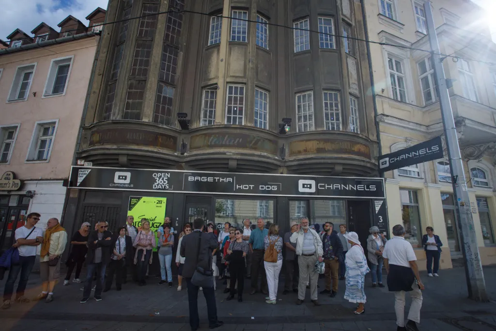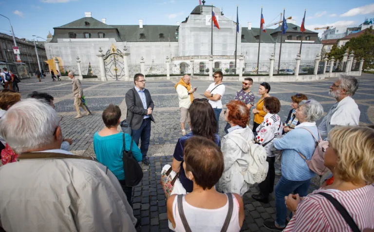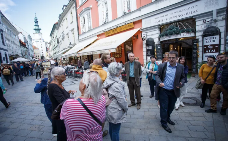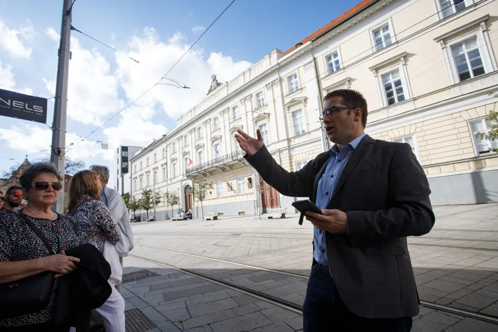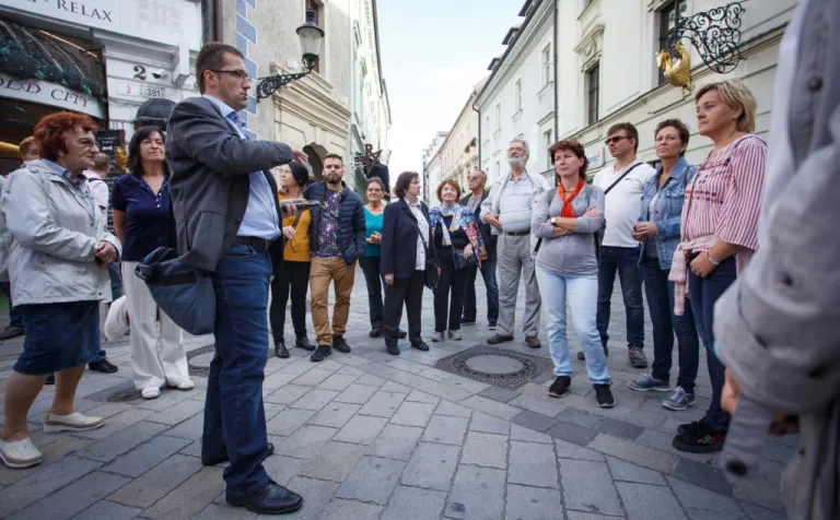A Pozsonyi Kifli alelnöke, Korpás Árpád idegenvezető 2019. szeptember 27-én tartott városnézésén 32-en vettek részt. Sétánk a XXXIII. Pozsonyi Városi Kulturális Napok nyitórendezvénye volt.