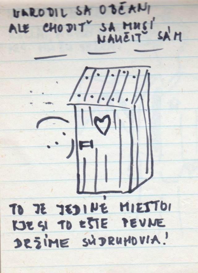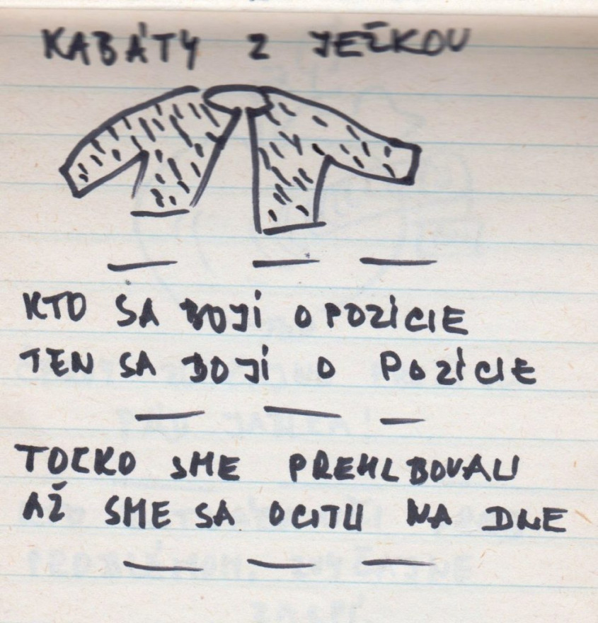 Előkerült egy jegyzettömb. És nemcsak előkerült, hanem a Pozsonyi Kifli szerkesztőségébe is eljutott. Benne karikatúraszerű rajzok és rövid jelmondatok. Egy Tóth Mária nevű egyetemista lány készítette ezeket 1989 novemberében, pontosabban megörökítette, amit az utcán, plakátokon látott.